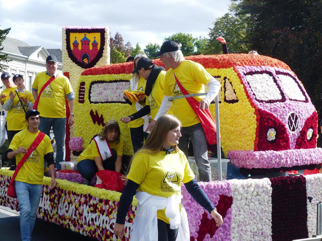 Der nächste Morgen begann, wie an allen folgenden Tagen auch, mit einem üppigen gemeinsamen Frühstücksbuffet im Vereinsheim. Mittags war der Festumzug des 411. Kramermarkts das Ziel. Mit dem Rad