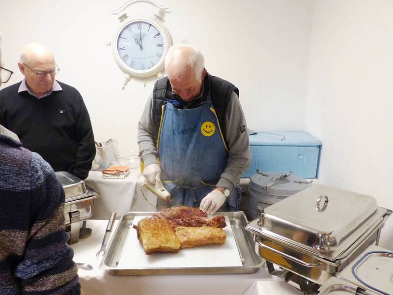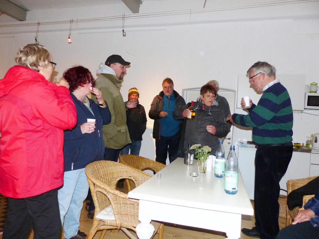Zum Wintertreffen gehört auch das zünftige, bremische Braunkohlessen. Vorweg wie immer eine Wanderung um sich Appetit zu holen. Vom Bollerwagen wärmten ein paar Schnäpschen und regten den Geist an. Gundi hatte den Männern sowie den Frauen Fragebögen und Spiele mitgegeben. Der Duft des Kohls beschleunigte dann die letzten Schritte zum Platz. Der Braunkohl samt Zutaten und Nachtisch, zubereitet von unserem Chefkoch Hans, war wieder mal sehr lecker. Auch lecker waren die Fischbrötchen am Abend. Beim Ratespiel hagelte es wieder Gewinne - unter anderem ein Schloss in den Wolken, 'ne Kiste Bier ein hübsch anzusehender Hundehaufen und vieles mehr.