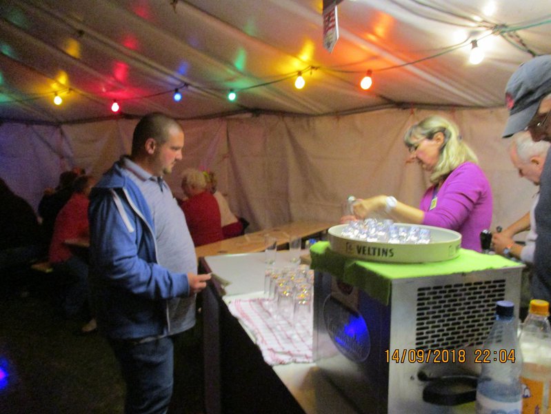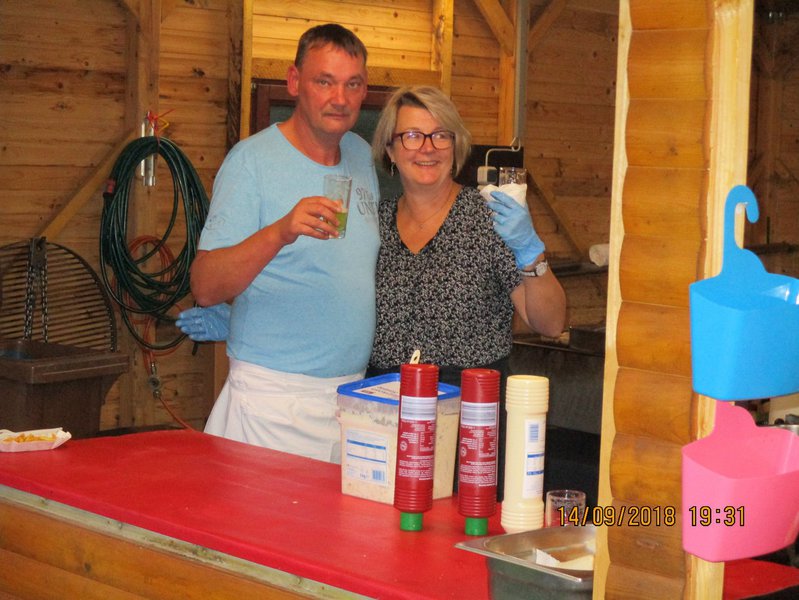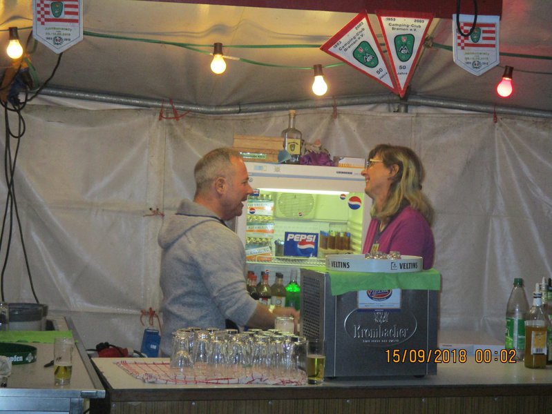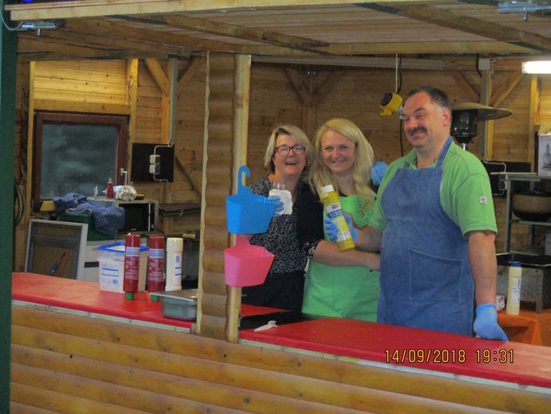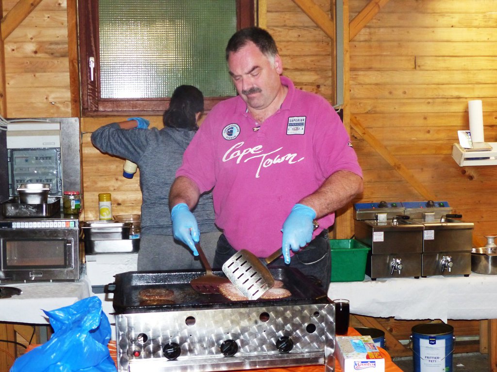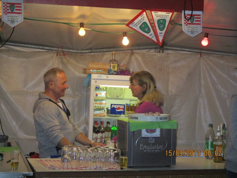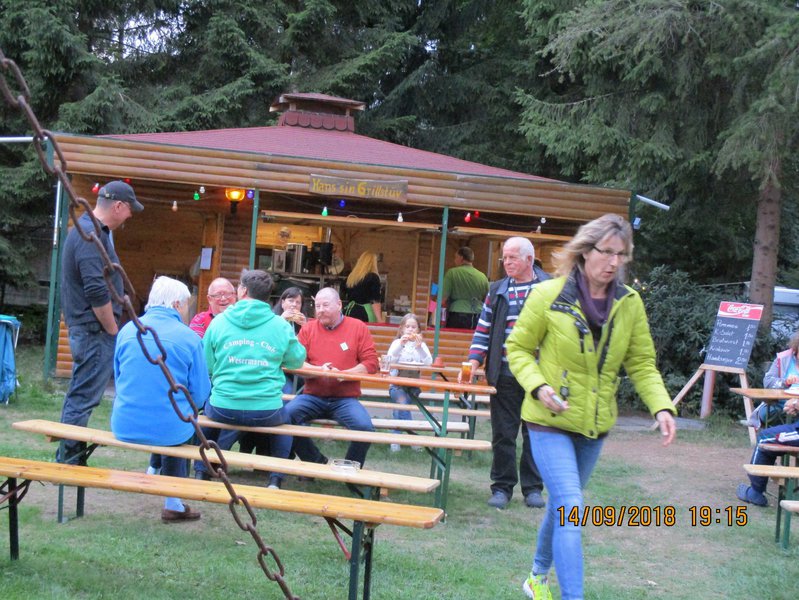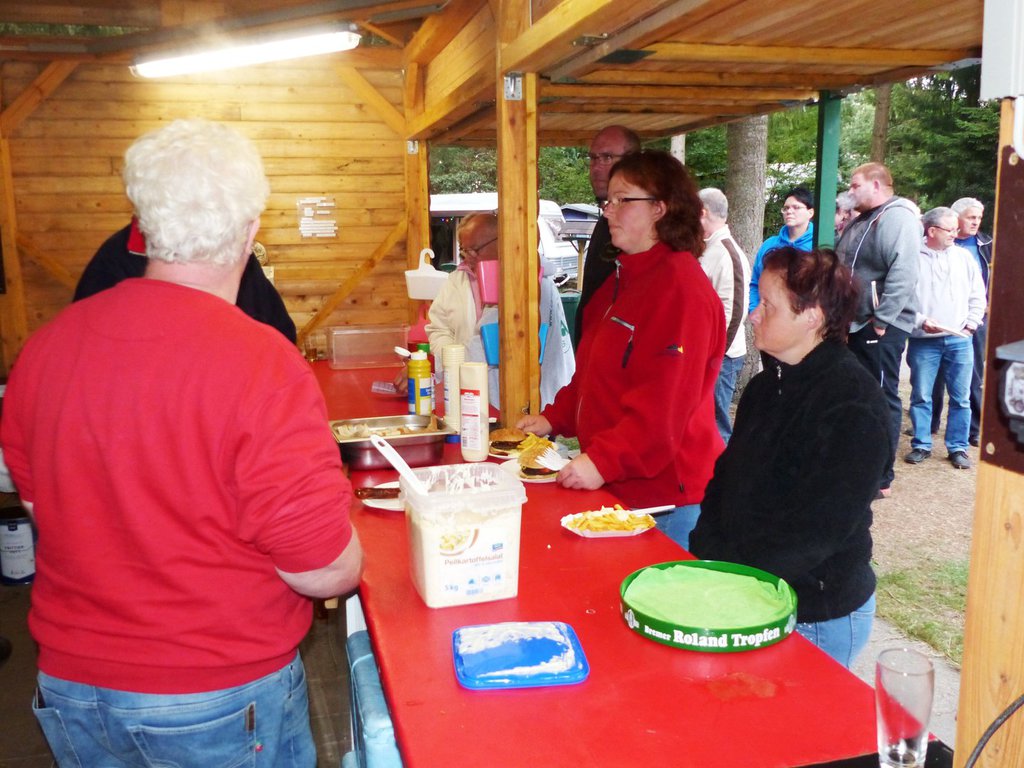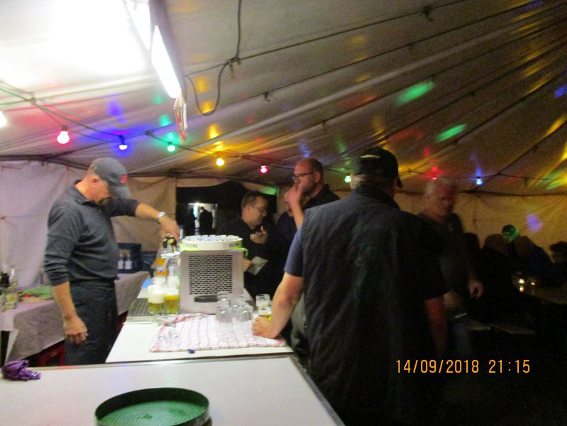 Frikadellen und Fleisch gegart. Die abendlichen Biere tranken wir im Gastraum des Vereinsheims.