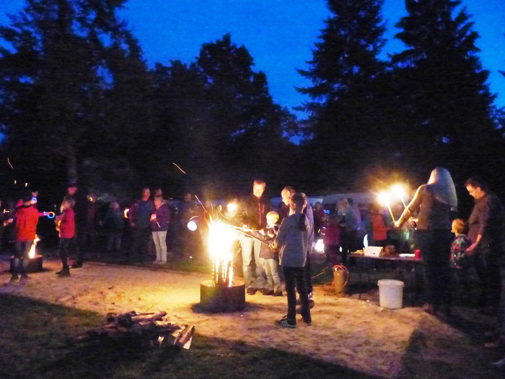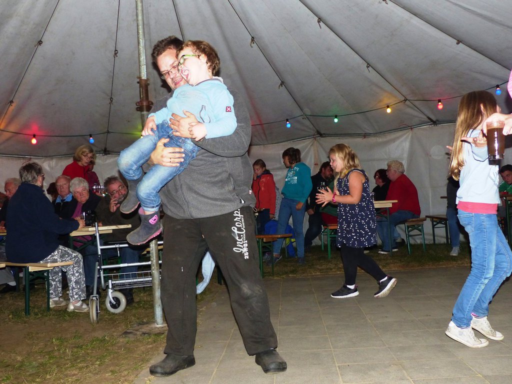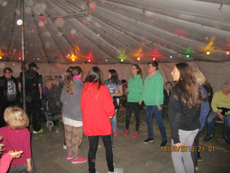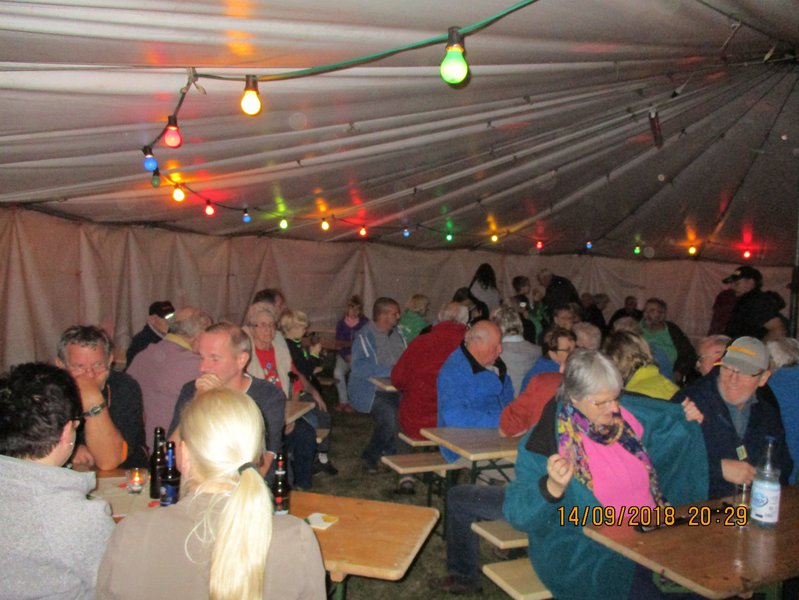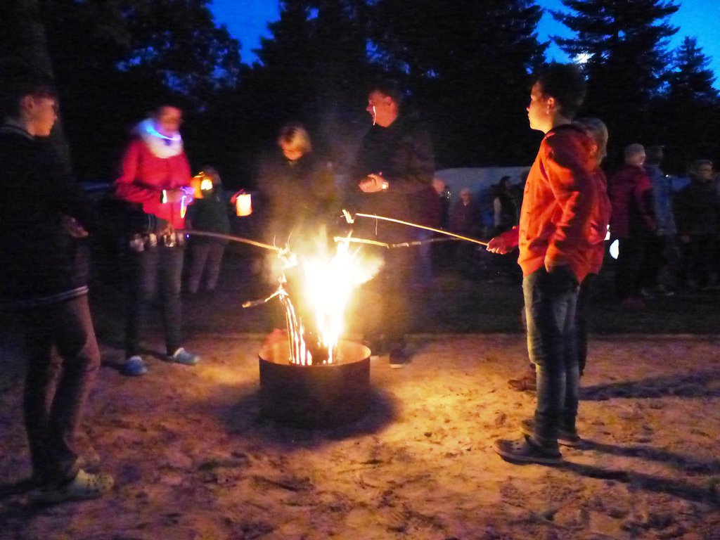 Nach Einbruch der Dunkelheit erlebten wir den schnellsten Laternenumzug aller Zeiten auf dem Platz, es gab nämlich Grillwürstchen, die am offenen Feuer gegrillt werden konnten. Dann stieg die Party für Groß und Klein im Festzelt.