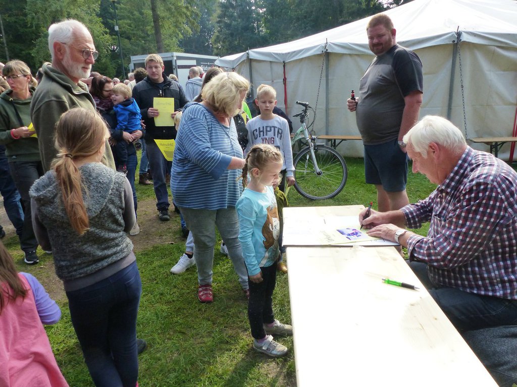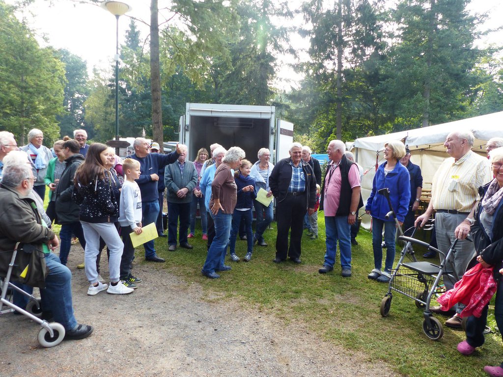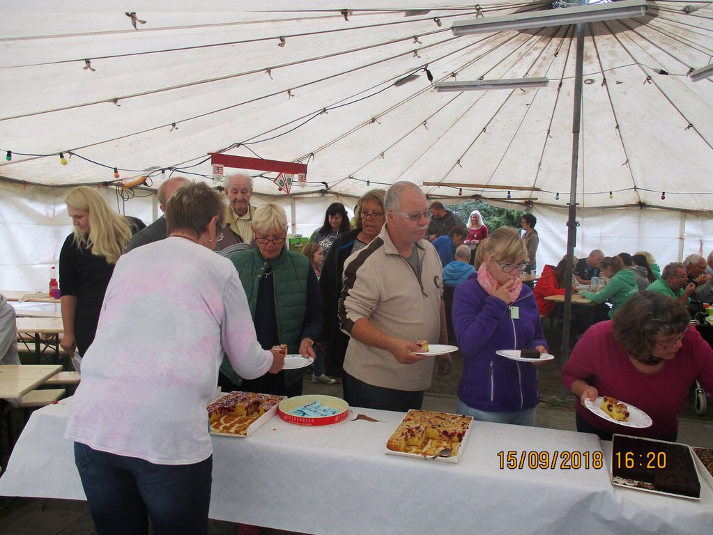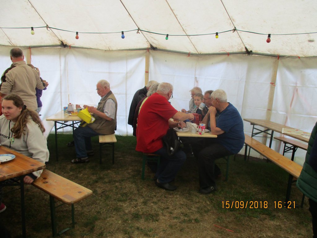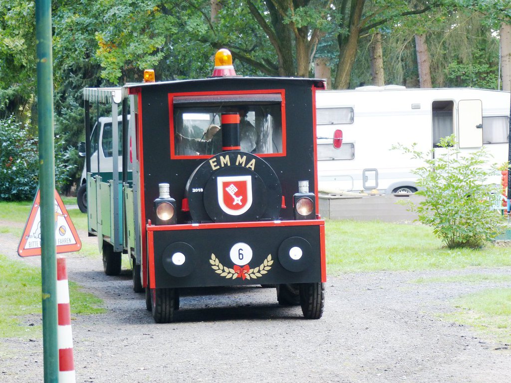 Auch in diesem Jahr hat der Wettergott mitgespielt und uns ein fast trockenes Wochenende mit angenehmen Temperaturen beschert. Große Wolkenlücken ließen die Sonne durchscheinen. 60 Einheiten kamen zusammen und 35 Kinder tobten über den Platz und ließen sich von der frisch restaurierten Emma, unserem als Lok verkleideten Trecker mit zwei Anhängern, über den Platz schaukeln.