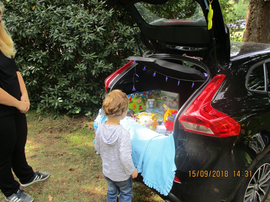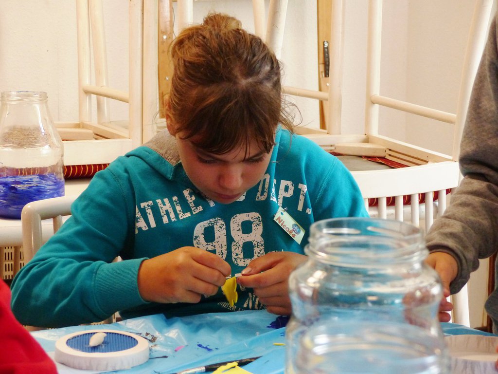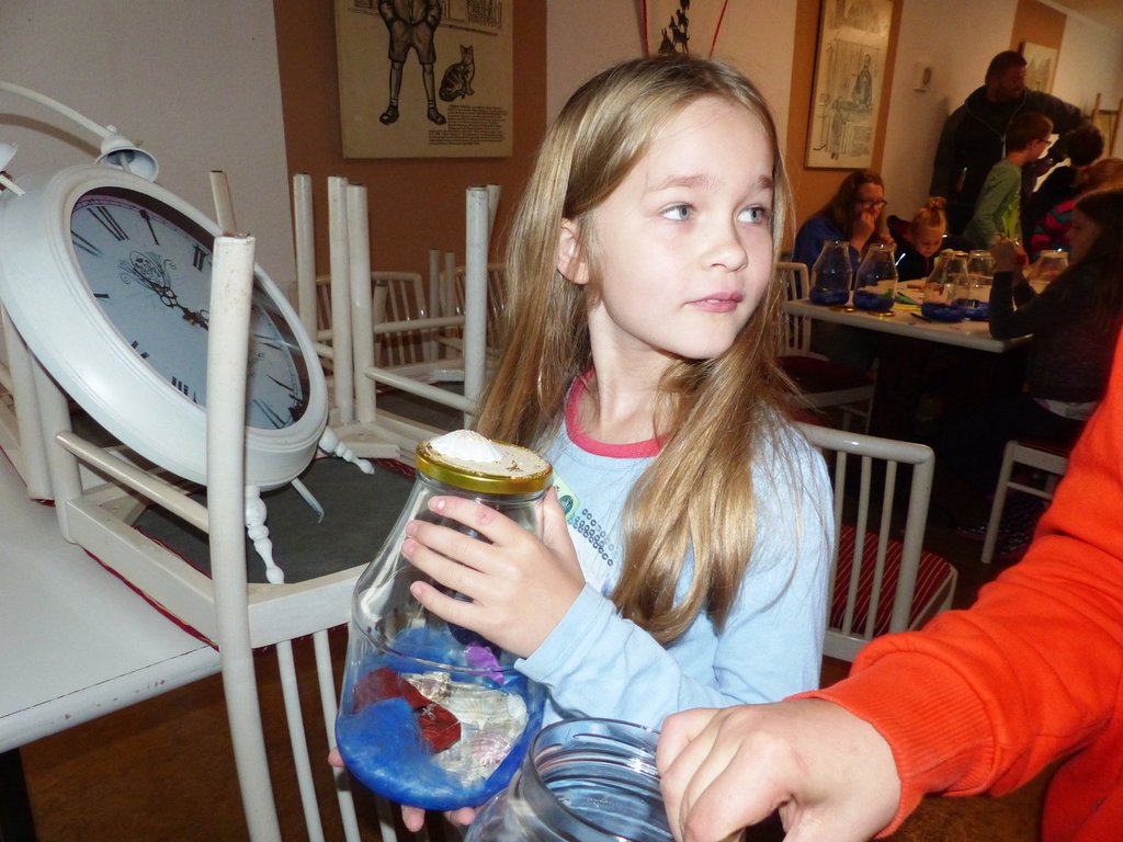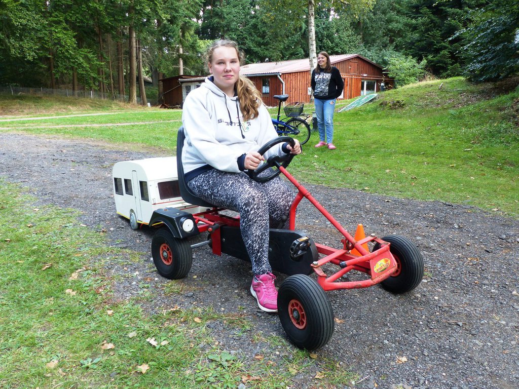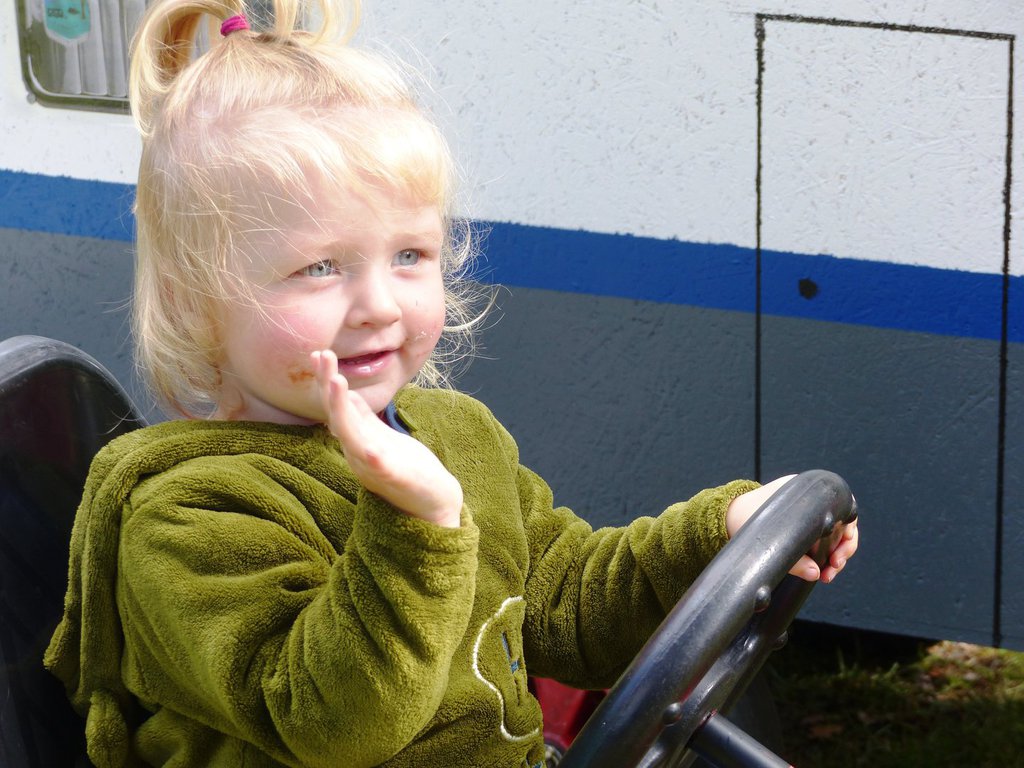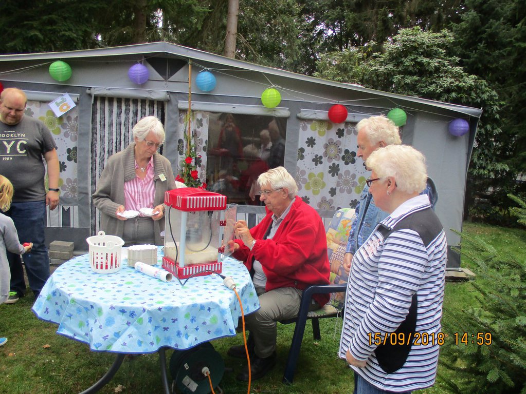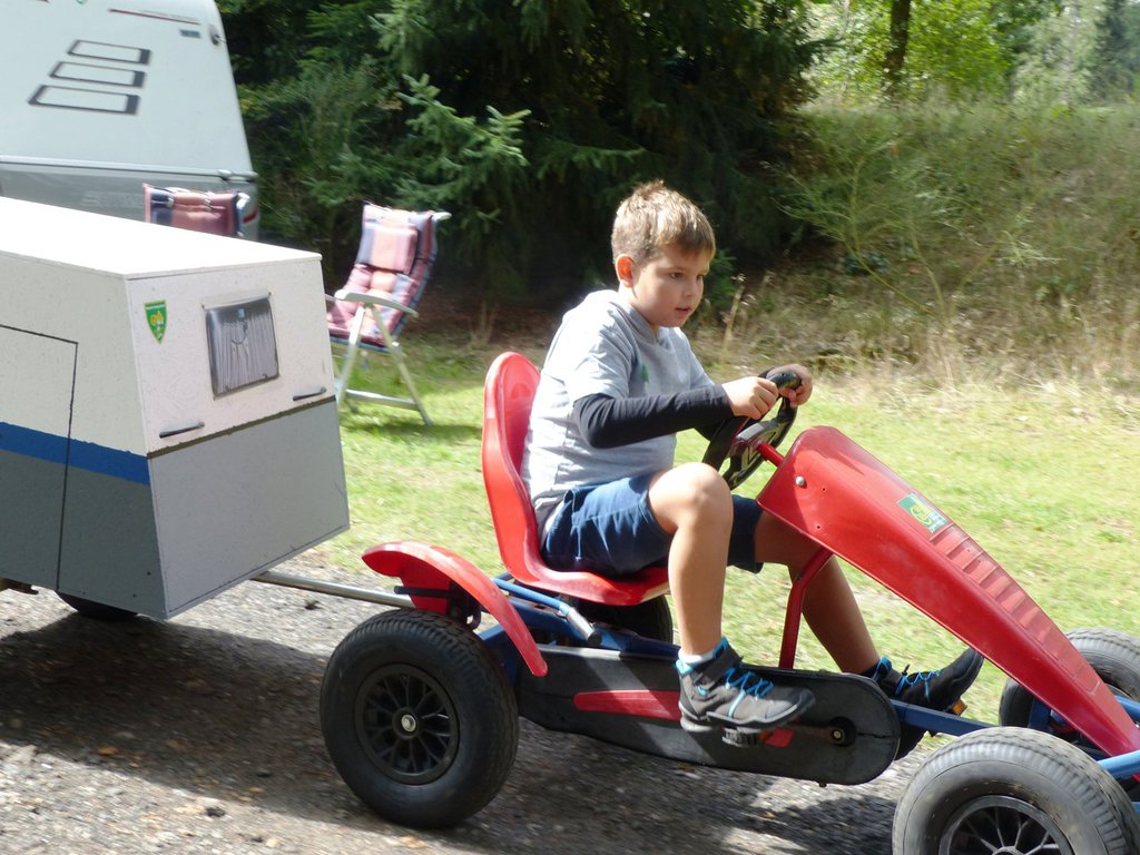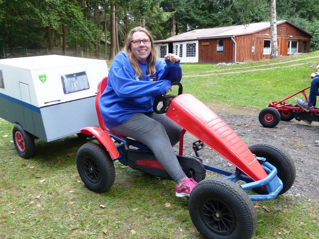 Am Sonnabend fertigten die Kinder bei einer Bastelstunde Fische und anderes Seegetier für die vorbereiteten Aquarien-Gläser. Hans hatte zu Mittag eine deftige Kartoffelsuppe zubereitet, für die Kleinen gab es alternativ auch Pommes. So gestärkt ging es zur Spielerallye. Ein Laufzettel sorgte dafür, dass auch keine der über den ganzen Platz verteilten Stationen verpasst wurde. Für jedes Mitmachen gab es süße Belohnungen. Die besondere Attraktion waren dann zwei Wohnwagengespanne - Kettcar mit kleinen Wohnwagen als Anhänger, mit denen ein Parcours befahren wurde. Danach wieder eine Stärkung am Kuchenbuffet.