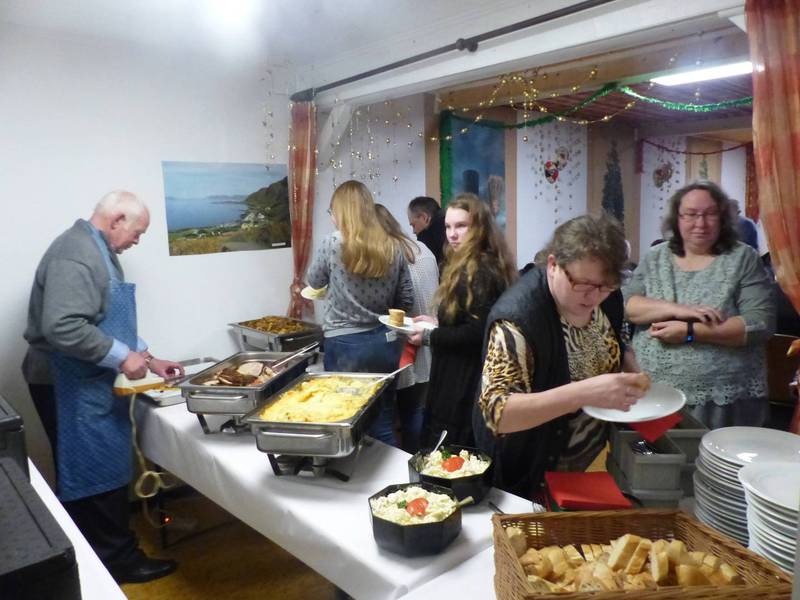 Am 2. Weihnachtstag rollten dann die Gespanne und Wohnmobile der Gäste an. Unser 1. Vorsitzender und Chefkoch Hans hatte ein rustikales, leckeres Bauernfrühstück zubereitet. Zur Begrüßung sprachen unser Hans und Jan Groenewold vom LV. Nun wurde das Wiedersehen gefeiert, alte Freundschaften bekräftigt und neue geschlossen. Ein Kennenlernspiel "finde einen Partner mit bestimmten Eigenschaften" brachte die Gäste und CCB’ler für einen Begrüßungsschluck zusammen.