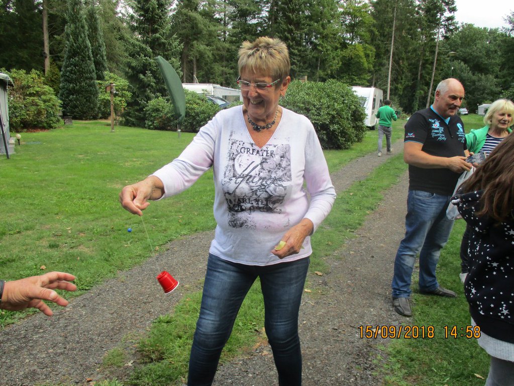 Der Sonntag begann ruhig. Eine große Kuchentafel lockte wieder alle ins Clubhaus. Dann trat Silvia Varnhorn auf und unterhielt uns mit "Döntjes" (kleinen Geschichten) über Land und Leute und hatte die Lacher auf ihrer Seite. Nach dem Genuss einer asiatischen Nudelpfanne - es blieb keine Nudel übrig - begann der Abend "Camper für Camper". Es wurden wieder einige Talente geweckt. Und es wurde wieder viel gelacht. Besonderen Dank an unseren Gast Hans, der mit seiner Gitarre den Clubraum zum Singen und Klingen brachte.