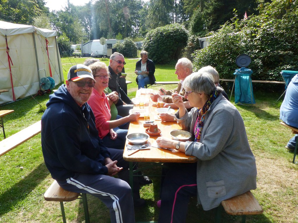 kürzte die geplante Strecke ab und vor dem dicksten Schauer waren wieder alle bei ihren Wohnwagen. Am Nachmittag im Vereinsheim war die Kuchentafel gedeckt und wir planten Fahrgemeinschaften für den